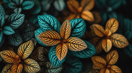 A stunning close-up of multicolored leaves showcasing vivid hues and intricate vein patterns. This image captures the beauty of natures palette, perfect for various themes.