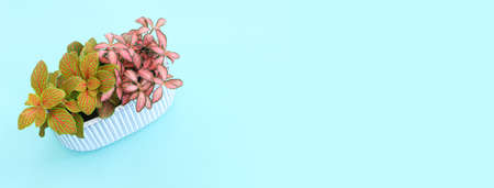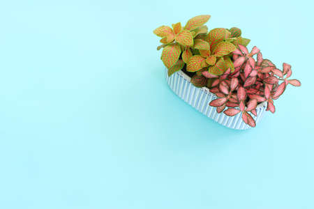 image of beautiful fittonia plants over pastel blue background