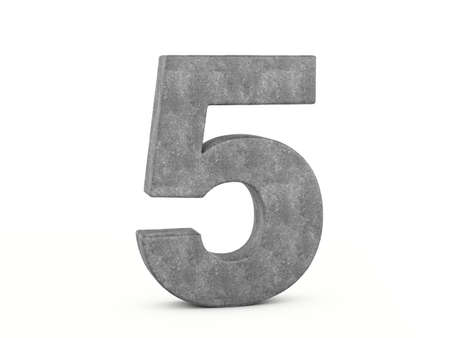 Concrete number five on a white background. 3d illustration.