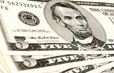 Macro photo of five dollars