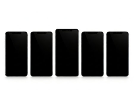 Six smartphones arranged in a grid, isolated on white background