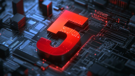 Digital Number 5 Glowing Three-Dimensional Figure On An Abstract Technology Circuit Background.