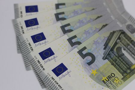 5 EURO banknotes. EUR money background representing savings, income, or investment