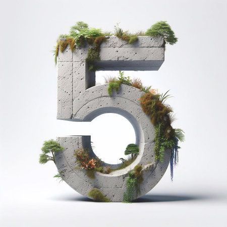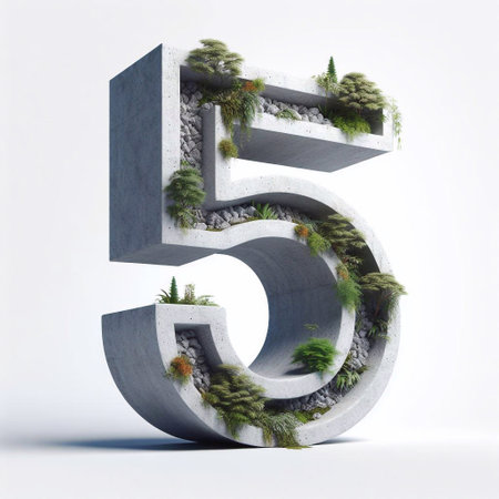 5 digit shape 3D Lettering That Blends Concrete With Nature. AI generated illustration