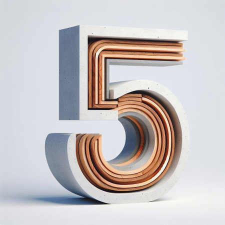 5 digit shape created from concrete and wood. AI generated illustration
