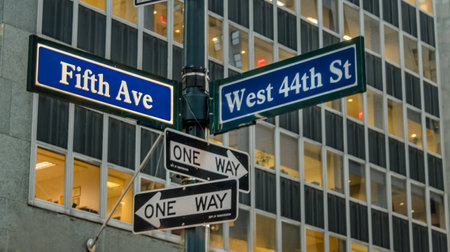 Street sign of Fifth Avenue and West 44th St - New York, USA
