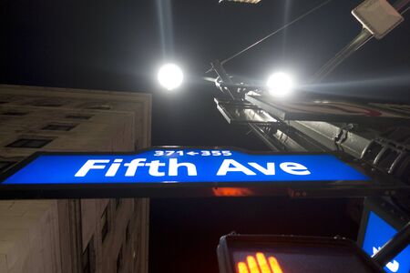 night manhattan fith avenue street sign