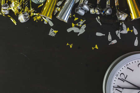New Year Eve party decorations on black board.