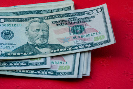 Background of 50 dollar bills. Image with high resolution and soft focus