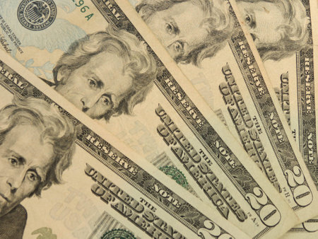 US dollar banknotes - twenty-dollar bill featuring President Andrew Jackson (1829-1837) on the front side