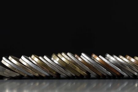 stack of coins ,one yen coins ,coins of japan for business and money concept.