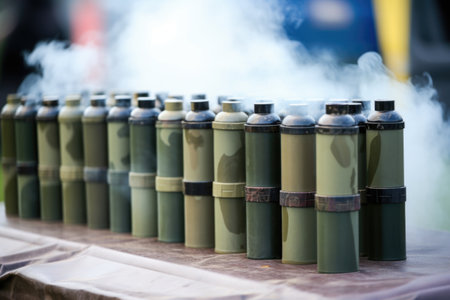 smoke signal canisters arranged in a row, created with generative ai