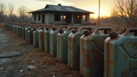 Canisters with fuel or other chemicals on the field