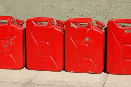 old fuel cans in the warehouse
