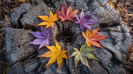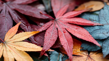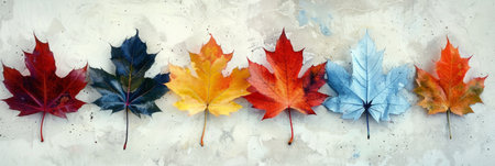 Colorful Maple Leaves on Artistic Background: Vibrant Autumn Foliage Display