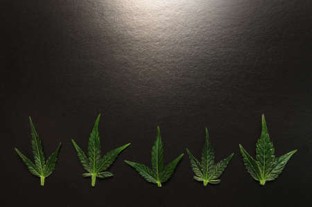 Cannabis leaves, marijuana plant isolated on black background. Herbal medicine. Hemp recreation, legalization concept.