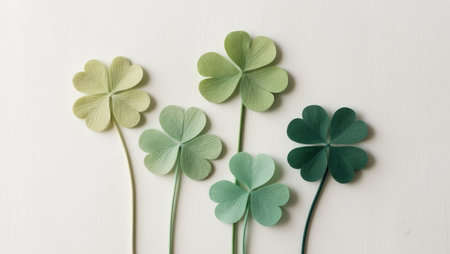 AI Generated. Four watercolor clovers in various shades of green on a light background