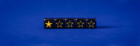 One gold star ranking on black cubes in conceptual image of online feedback or customer review concept