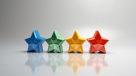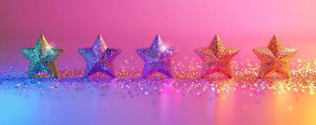Five stars on a colorful background. Rating of a hotel, restaurant, mobile app or cafe. Five star rating. The status of the institution, hotel. Rating and evaluation concept