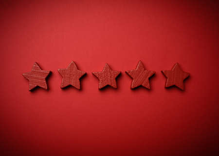 Concept excellent rated services. Wooden cube in the shape of five stars. Best excellent business services rating customer experience concept. Wooden 5 stars