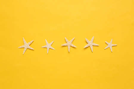 Summer background of yellow paper with starfish, symbolizing the sand on the sea coast