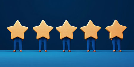 Five Stars Rating Service Review Figures Presenting Star Shapes in Business Attire Hiding Identities