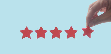 Rise on increasing five stars in human hand, Increase rating evaluation classification concept