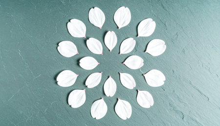 Soft pastel petals scattered in a symmetrical pattern for floral-themed visual compositions
