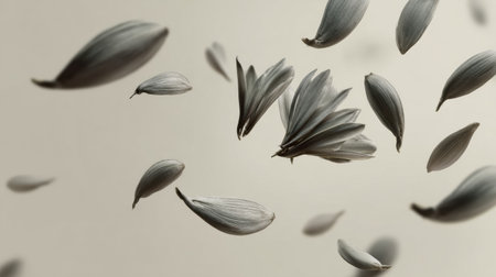 Delicate petals drift softly against a muted backdrop, evoking tranquility and grace, perfect for appreciating natures beauty during quiet moments.