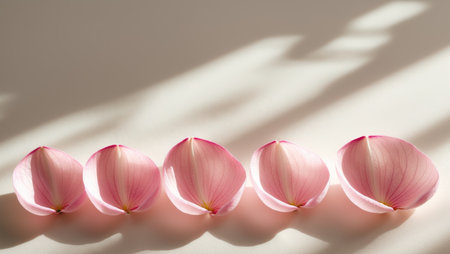 AI Generated. Delicate Pink Flower Petals Arranged in a Row