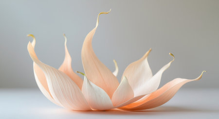 A delicate flower petal rests softly on a textured surface, showcasing the elegance of nature with gentle lighting and soft shadows. The minimalist composition emphasizes beauty and fragility.