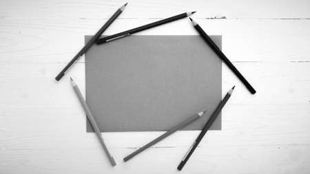 Minimal background composition of printed photographs and laptop on textured wooden desk, photographers office, copy space