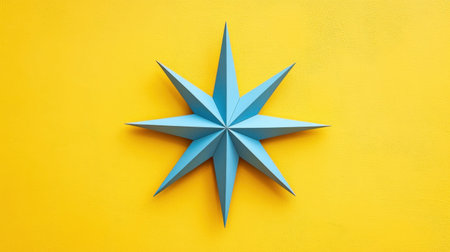 A striking blue star decoration set against a vibrant yellow background, ideal for creative projects and inspiring artistic designs. Perfect for modern aesthetics.