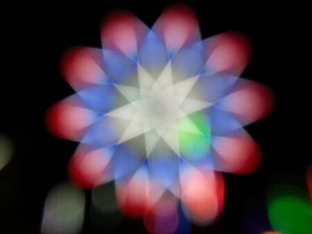 Colorful bokeh defocused Christmas garlands, Christmas fair. Festive abstract background.