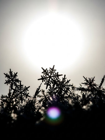 Capture the beauty of an intricate snowflake against a dark background. This macro image highlights the delicate details and unique patterns inherent in nature during wintertime.