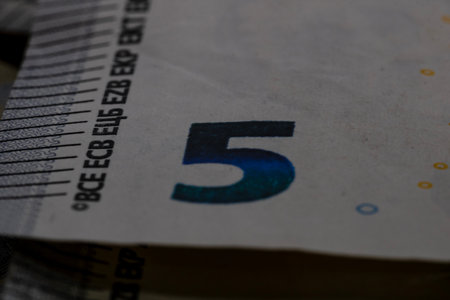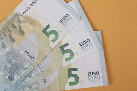 5 EURO banknotes. EUR money background representing savings, income, or investment