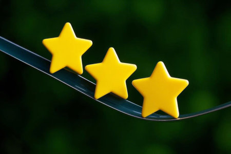 Bright golden stars shine on a smooth dark surface reflecting achievement and quality.