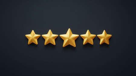 Five golden stars elegantly arranged on a dark backdrop symbolize excellence and recognition, perfect for showcasing achievements, awards, or accolades in design.