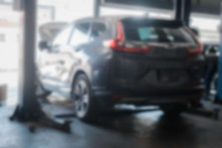 Blurred background repairing the car in the garage, auto repair service station