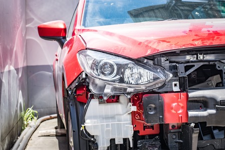 Car damage on road accident - car insurance concept