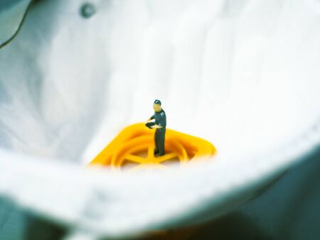 concept of trying to cross bridge obstacle with miniature people and 4x4 all-terrain vehicle