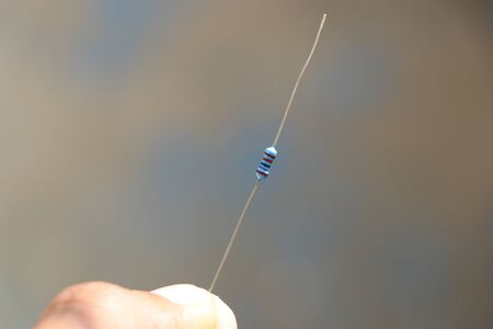 Old film resistors in your hand. Resistors with axial terminals. Elements of electronics.