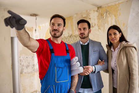 Consultation with builder handyman, working on project renovations apartment