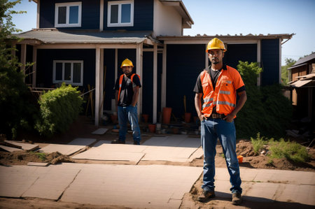 portrait of a handsome young contractor standing in the doorway of a new home, created with generative ai