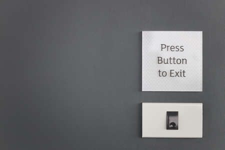 Exit button access control on gray wall background