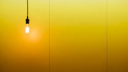 Bright Yellow Vintage Incandescent Bulb Glowing Alone in a Softly Blurred Background Image