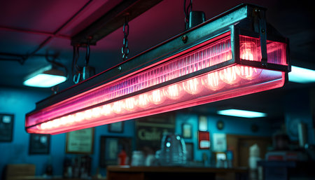 Red LED lamp in a cafe, close-up. Retro-style