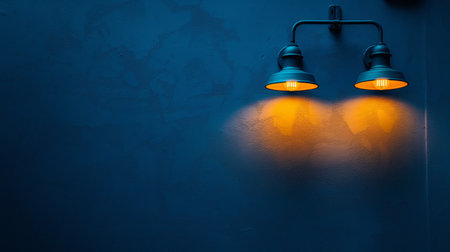 Vintage wall lamp on dark blue wall background with copy space for text or desig