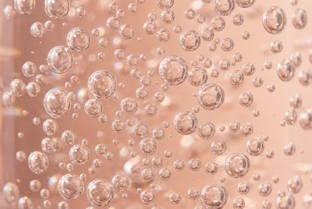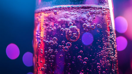 This stunning close-up image captures the mesmerizing bubbles in a sparkling drink, showcasing reflections and textures that create a vibrant and dynamic feel.