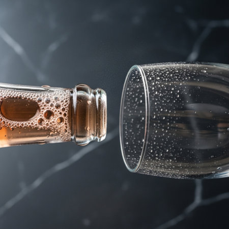 Bubbles from champagne rise in a glass, creating a clear and detailed view of the effervescence in a setting of celebration and indulgence